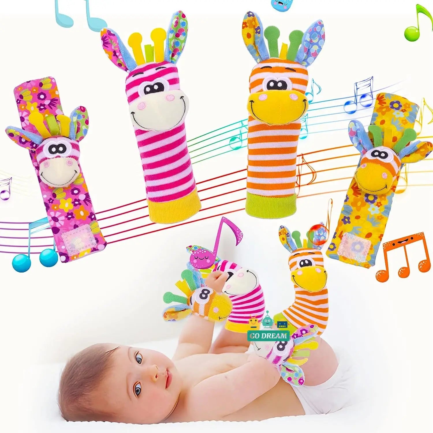 Explore the world with these bright and cheery wrist rattles and socks for your little one! Encourages vision and color cognition, stimulating their young minds for hours of learning and play. Perfect for developing motor skills and hand-eye coordination. Bring joy and learning to your baby's day!